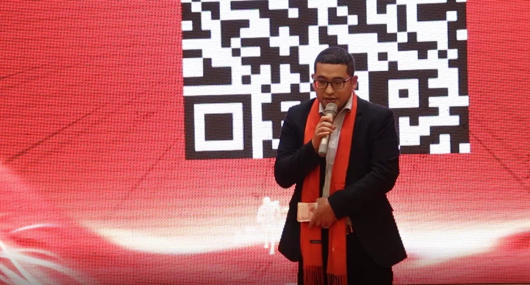 2021年在业务部同事的共同努力下,不但完成了年初预定的销售目标,更是在这基础上翻了一番,何志飞总经理代表业务部发表了讲话,更准备了丰厚的奖金,内贸经理刘明上台领取现金红包,并代表销售部发表了2022年必胜的信心。