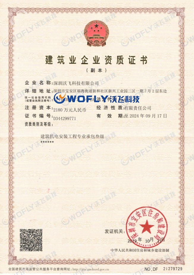 沃飞具有国家建筑机电安装专业承包资质,国家安全生产许可证,GC2压力管道安装资质