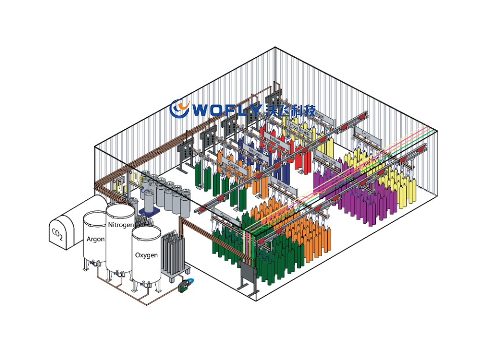 什么是气体充装系统?工业气体按组份可分为单一品种气体的工业纯气和二元或多元气体的工业混合气。国家标准《瓶装压缩气体分类》(GB16163-1996)中,根据工业纯气在气瓶内的物理状态和临界温度进行分类,并按其化学性能,燃烧性、毒性、腐蚀性进行分组。第1类为永久气体,其临界温度〈-10℃,在充装时以及在允许的工作温度下储运和使用过程中均为气态,分为a、b两组:a组为不燃无毒和不燃有毒气体(包括氧、 氮、氩等),b组为可燃无毒和可燃有毒气体(包括氢等)。第2 类为液化气体,其临界温度≥-10℃, 包括高压液化气体和低压液化气体。其中,高压液化气体临界温度≥-10℃、且≤70℃,在充装时为液态,但在允许的工作温度下储运和使用过程中随着温度升高至临界温度时即蒸发为气态,分为a、b、c 三组:a组为不燃无毒和不燃有毒气体(包括二氧化碳);b组为可燃无毒和自燃有毒气体;c 组为易分解或聚合的可燃气体。低压液化气体临界温度〉70℃,在充装时以及在允许的工作温度下储运和使用过程中均为液态,也分为a、b、c三组:a组为不燃无毒和不燃有毒及酸性腐蚀气体(包括氯);b 组为可燃无毒和可燃有毒及碱性腐蚀气体(包括氨);c 组为易分解或聚合的可燃气体。第3类为溶解乙炔, 在压力下溶解于气瓶内溶剂的气体,仅有a组:易分解或聚合的可燃气体(包括乙炔)。此分类是混合气配制的基础。