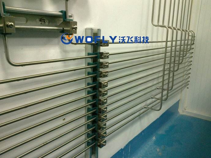 1.气瓶间内气体控制面板与实验室内的气路终端减压装置之间选用SS316LBA管进行连接,管道内表面光洁度为Ra<0.4umBA级管道。