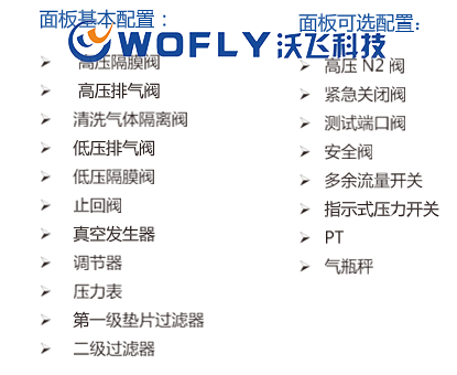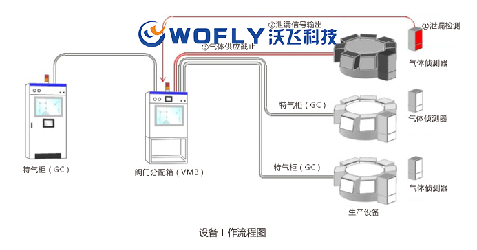 对于有特殊需求的客户,WOFLY特气柜可能需配备一些其他的安全装备,比如:气柜里安装喷淋头,在气体下游流量过大是报警的过流开关,需要安装温度开关的可燃气体系统等,具体的配置是根据需求发生改变的。