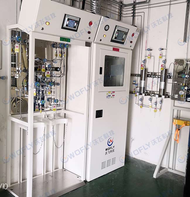 在特气系统工程中最具代表性的设备便是沃飞特气柜了,沃飞特气柜的负压系统、气体侦测报警系统、自动吹扫、自动切换以及紧急情况下的自动安全切断等功能都在很大程度上保障了气体的纯度、使用安全和稳定供气。