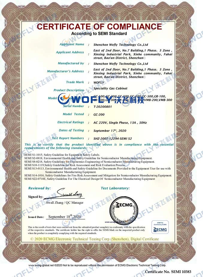 SEMI S2的对象是针对半导体制程设备的,是关于环境、健康、安全方面的标准,也即为EHS标准,因为半导体行业涉及到很多特种气体、化学品及电气、游离及非游离的辐射,如果处理不好,下游用户在使用的时候就很容易导致事故甚至灾难,因此对设备厂商的设备产品如电子特气柜,拥有SEMI S2认证就显得极端重要。