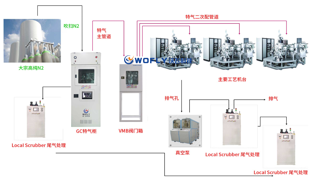 “气”晚来迟,大“势”正兴起。作为专业从事气体应用系统工程的中坚力量,沃飞科技打造了安全可靠的电子特气管道系统,将特种气体从气源端、根据工艺设备的工艺需求、通过对流量和压力等参数的控制,通过管道、无二次污染、稳定输送到工艺设备,确保SiH4、NF3C2易燃易爆的气体、有毒的气体、有腐蚀性的气体、纯度特别高超过9.99%的一些具有高危险性的特气储存、输送与分配