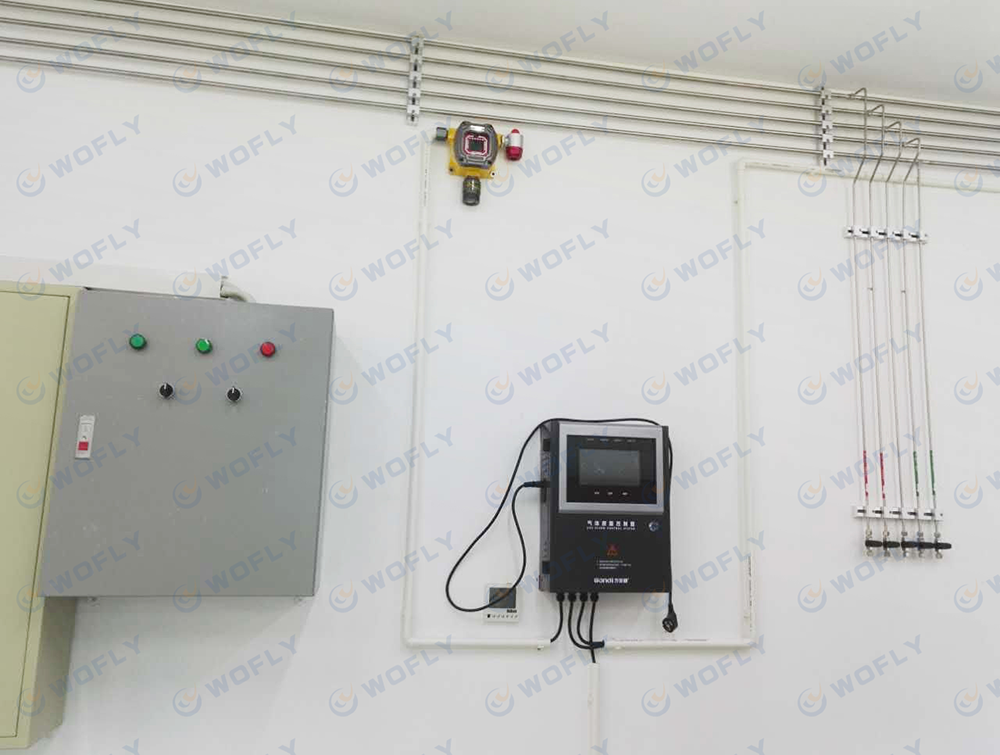 如特种气体中的硅烷(SiH4)为自燃性,一旦泄漏就会与空气中的氧气发生剧烈反应,开始燃烧。砷烷为剧毒性,微量泄漏就可能导致人员的生命危险。因此,对系统设计的安全性要求十分严格,其中关于气体检测报警系统的设置是十分有必要的,避免气体泄露等危险发生。