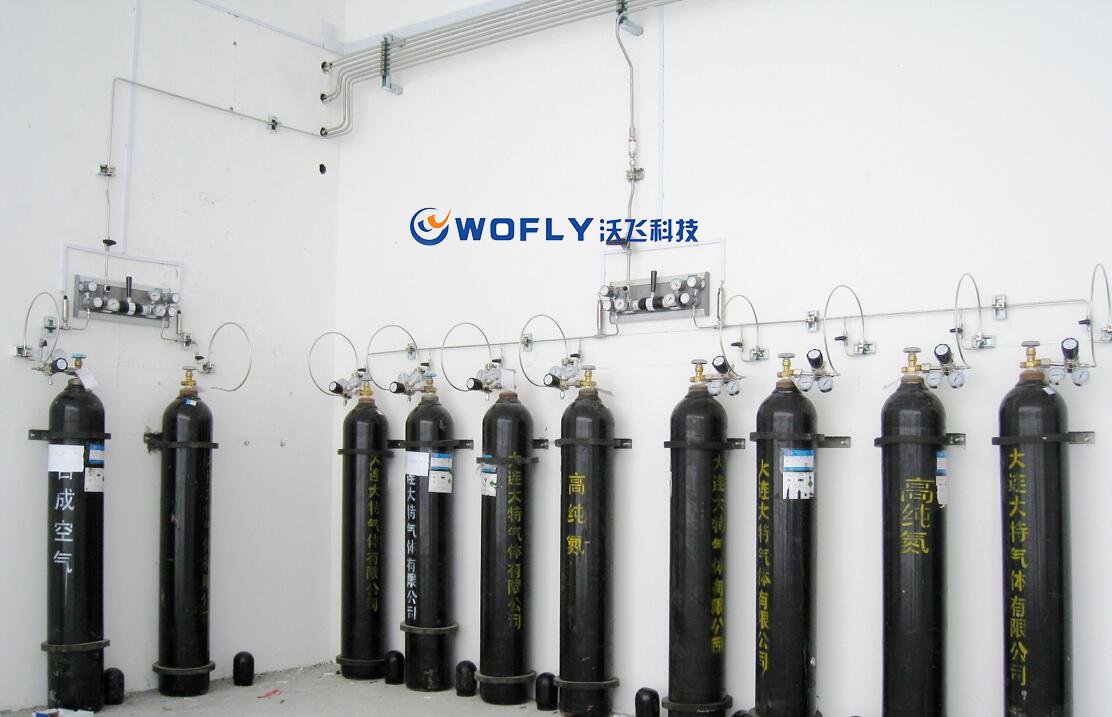 实验室气路系统包括实验室集中供气系统和室内气瓶供气系统,可以满足您不同等级要求的气体安 全使用。集中供气管路系统工程主要是为试/实验室选用的分析设备提供量值和压力稳定的标准气体,保证其储存和使用的安 全性。保障分析测试人员在实验中免受有毒有害气体的侵害。按照国标要求,将所用全部气体存放于储气间,并实现集中输送,组成集中供气系统。系统采用一拖一、一拖多、多拖一和多拖多的管道式输气方式,在一拖多时能够实现分段控制和在多拖一和多拖多时能够实现切换控制;并能够保证标准气体流量、压力稳定和量值传递不发生变化,满足分析检测设备对使用气体的技术要求。