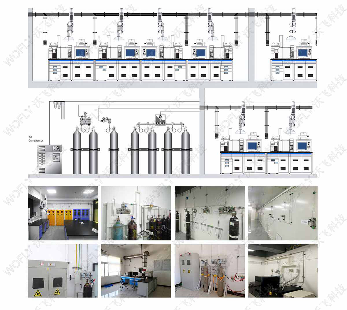 实验室集中供气系统主要由:气源、切换装置、调压装置、终端用气点和气体泄漏监测报警装置,能将气源(一般为气体钢瓶)中气体经过切换装置并调压供气输送到各个分散的终端用气点。